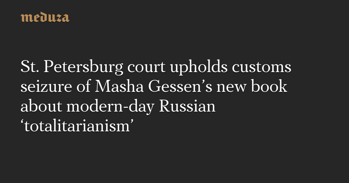 St. Petersburg court upholds customs seizure of Masha Gessen’s new book about modern-day Russian ‘totalitarianism’