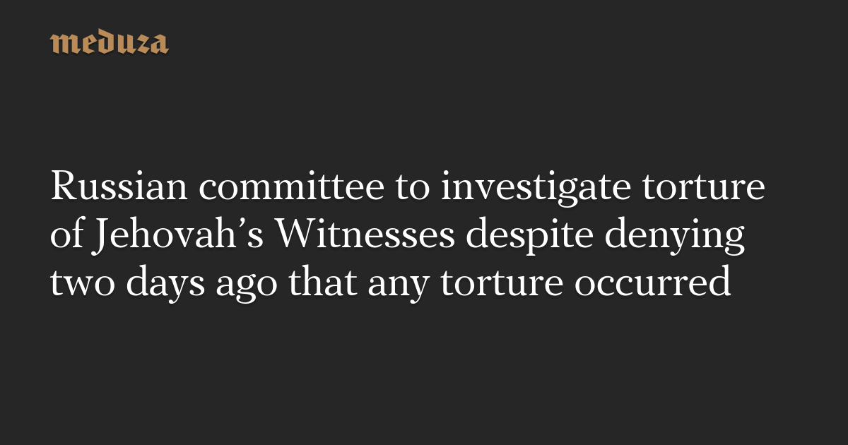 Russian committee to investigate torture of Jehovah’s Witnesses despite denying two days ago that any torture occurred