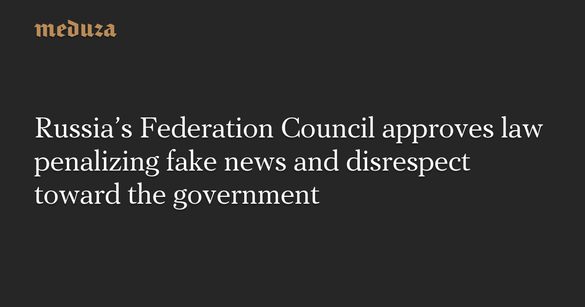 Russia’s Federation Council approves law penalizing fake news and disrespect toward the government