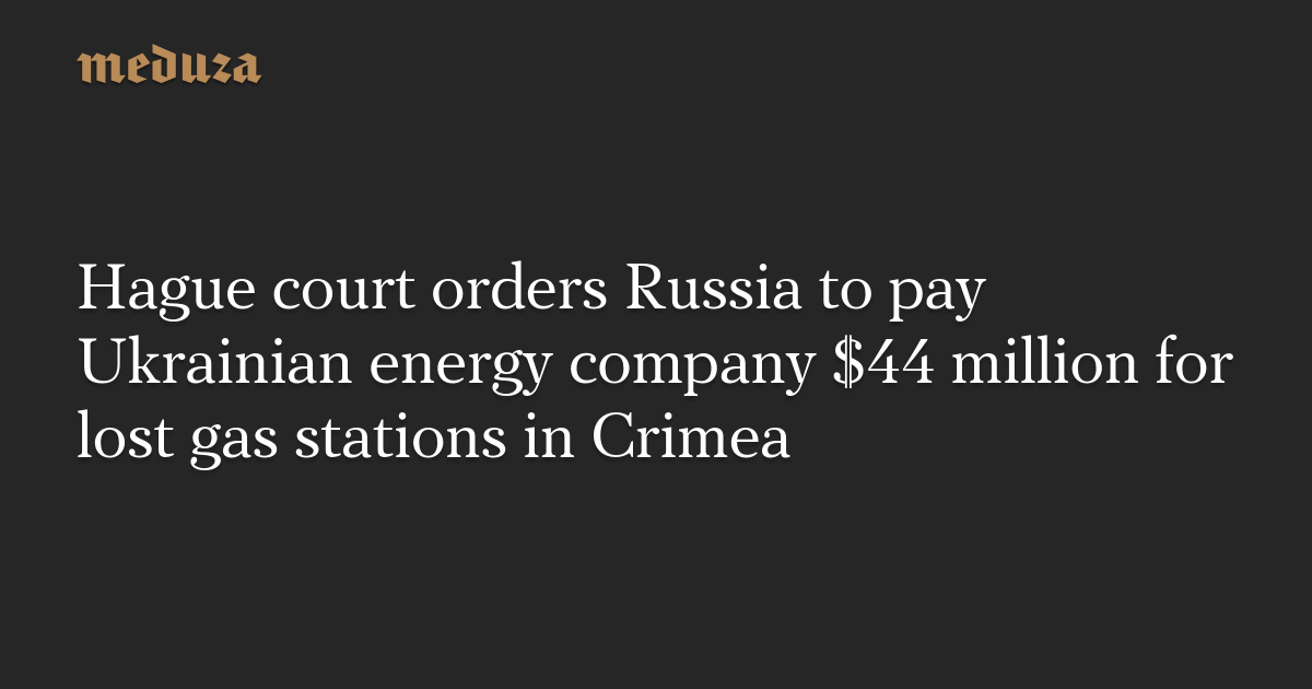 An international arbitration court in The Hague has ordered the Russian government to pay the Ukrainian company Ukrnafta $44.4 million in compensation for seizing 16 of the company’s Crimean gas stations when the peninsula was annexed in 2014.