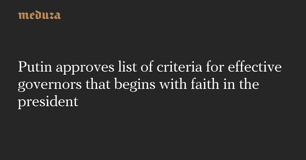 Putin approves list of criteria for effective governors that begins with faith in the president