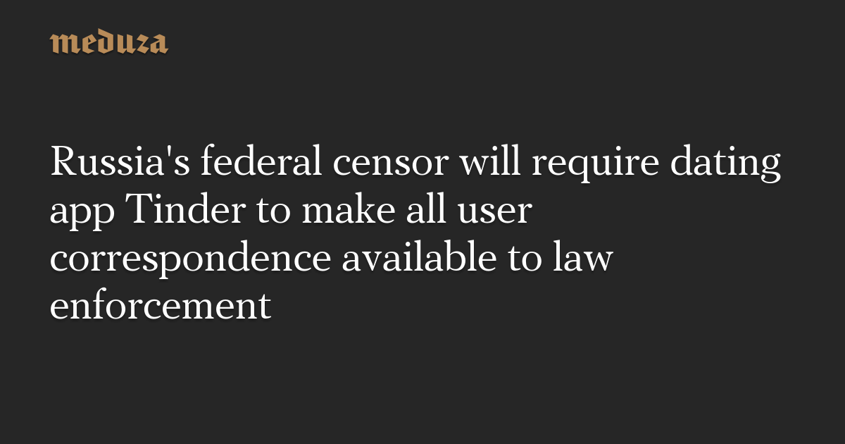 Russia's federal censor will require dating app Tinder to make all user correspondence available to law enforcement