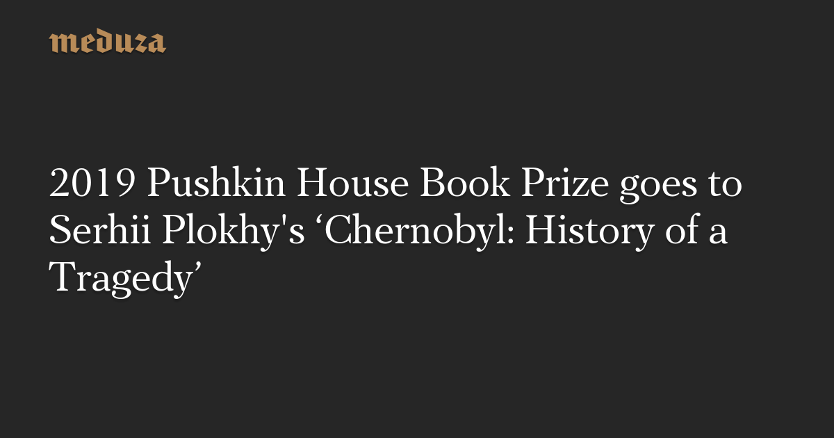 Chernobyl: History of a Tragedy by Harvard historian Serhii Plokhy has been named the winner of the 2019 Pushkin House Book Prize, which honors English-language nonfiction about the Russian-speaking world. Plokhy previously won the Pushkin Prize for The Last Empire: The Final Days of the Soviet Union, making him the first author to win the award twice. A £5,000 ($6,343) prize was awarded to Plokhy today in a London ceremony.
