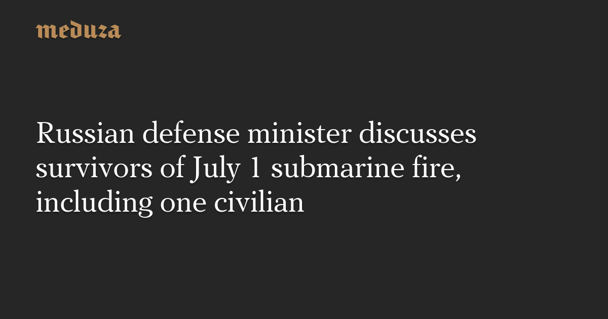 Russian defense minister discusses survivors of July 1 submarine fire, including one civilian