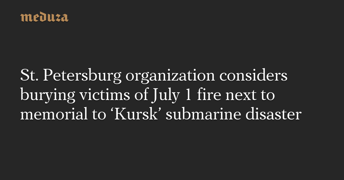 St. Petersburg organization considers burying victims of July 1 fire next to memorial to ‘Kursk’ submarine disaster