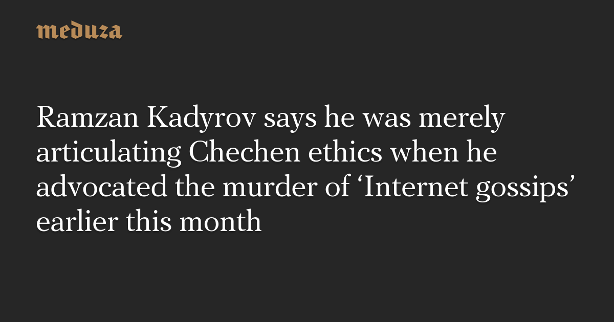 Ramzan Kadyrov says he was merely articulating Chechen ethics when he advocated the murder of ‘Internet gossips’ earlier this month