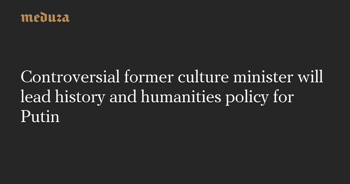 Former Culture Minister Vladimir Medinsky was excluded from the new cabinet composed by Russian Prime Minister Mikhail Mishustin. While Medinsky’s former subordinate, Olga Lyubimova, took over his portfolio, the ex-minister became an aide to President Vladimir Putin. On January 27, Kremlin Press Secretary Dmitry Peskov told journalists that in Medinsky’s new position, he will be charged with curating state policy on history and the humanities.