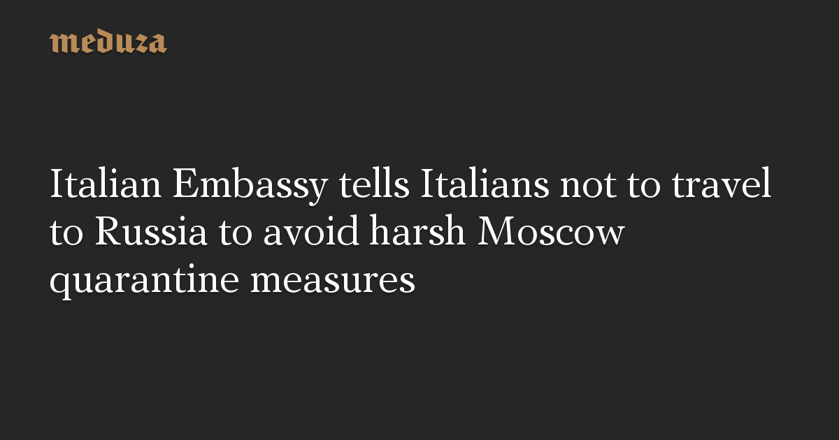 Italian Embassy tells Italians not to travel to Russia to avoid harsh Moscow quarantine measures