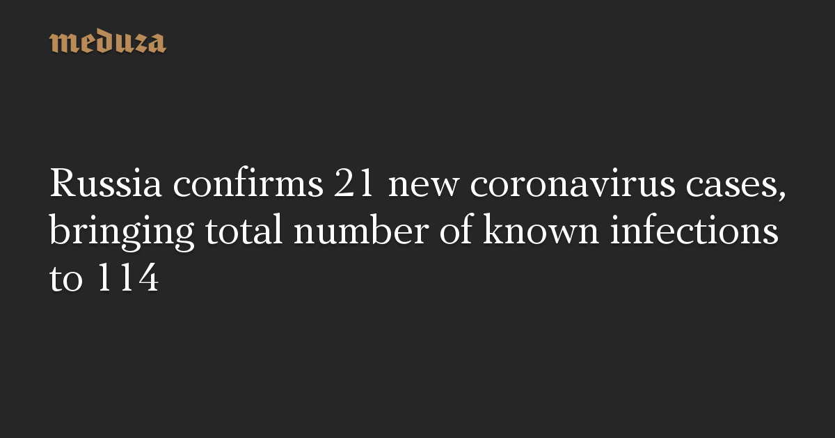 Russia confirms 21 new coronavirus cases, bringing total number of known infections to 114
