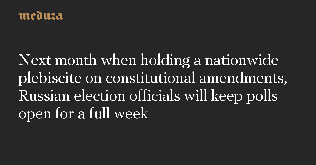 Next month when holding a nationwide plebiscite on constitutional amendments, Russian election officials will keep polls open for a full week