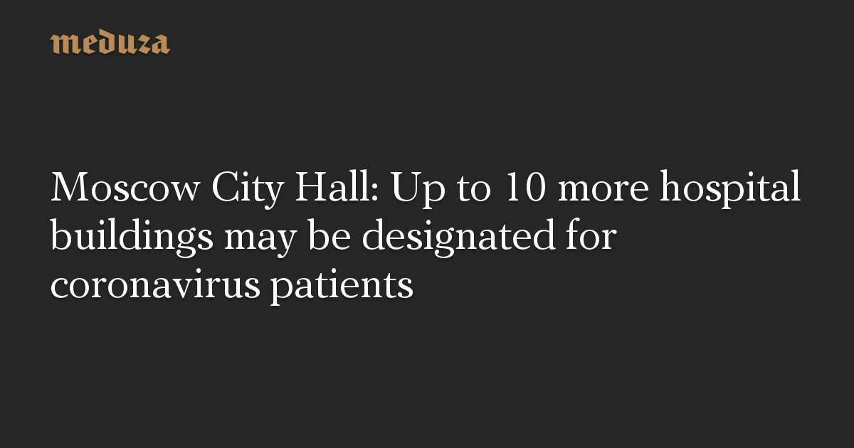 Moscow City Hall: Up to 10 more hospital buildings may be designated for coronavirus patients