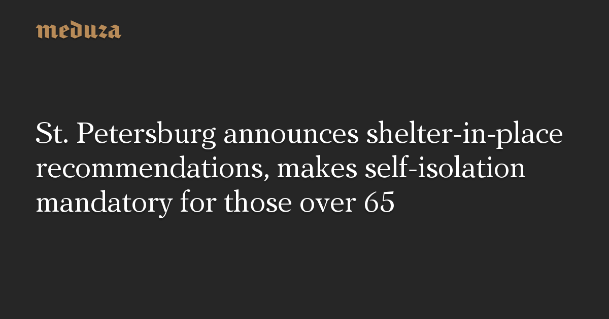 Update: This article has been corrected to indicate that for individuals below 65 years old, the measures announced for St. Petersburg are recommendations; they are only mandatory for older residents. Meduza regrets the error.