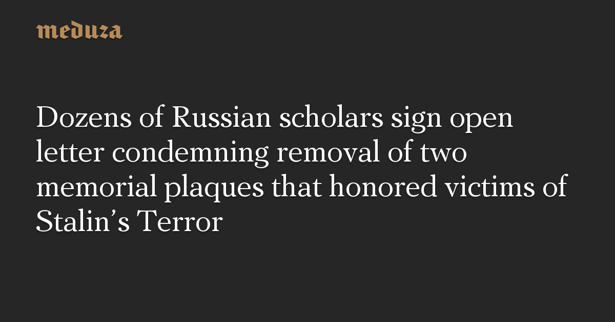 Dozens of Russian scholars sign open letter condemning removal of two memorial plaques that honored victims of Stalin’s Terror