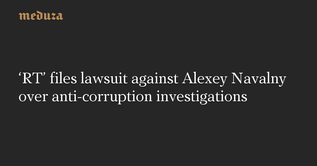 On Twitter, Navalny wrote that the lawsuit was filed on behalf of the non-profit organization “TV-Novosti,” which is managed by RT.