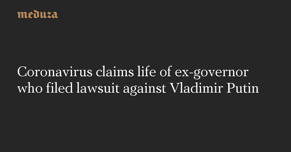Coronavirus claims life of ex-governor who filed lawsuit against Vladimir Putin