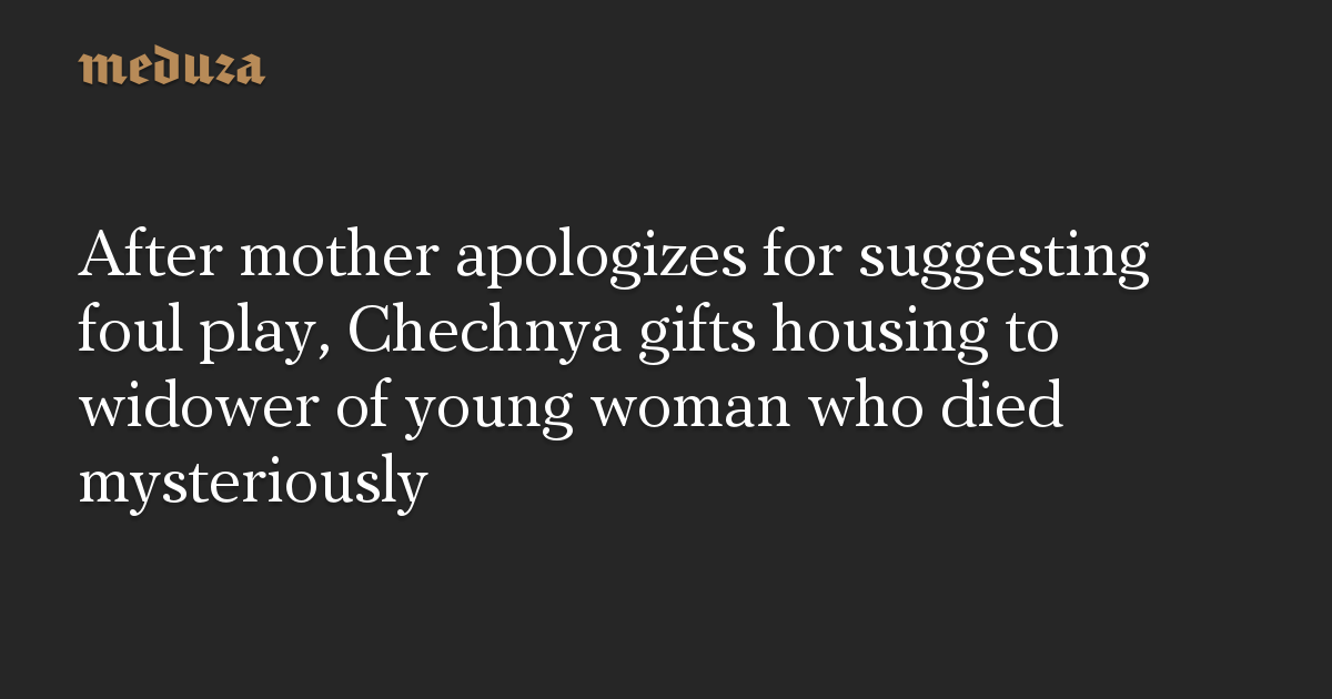After mother apologizes for suggesting foul play, Chechnya gifts housing to widower of young woman who died mysteriously