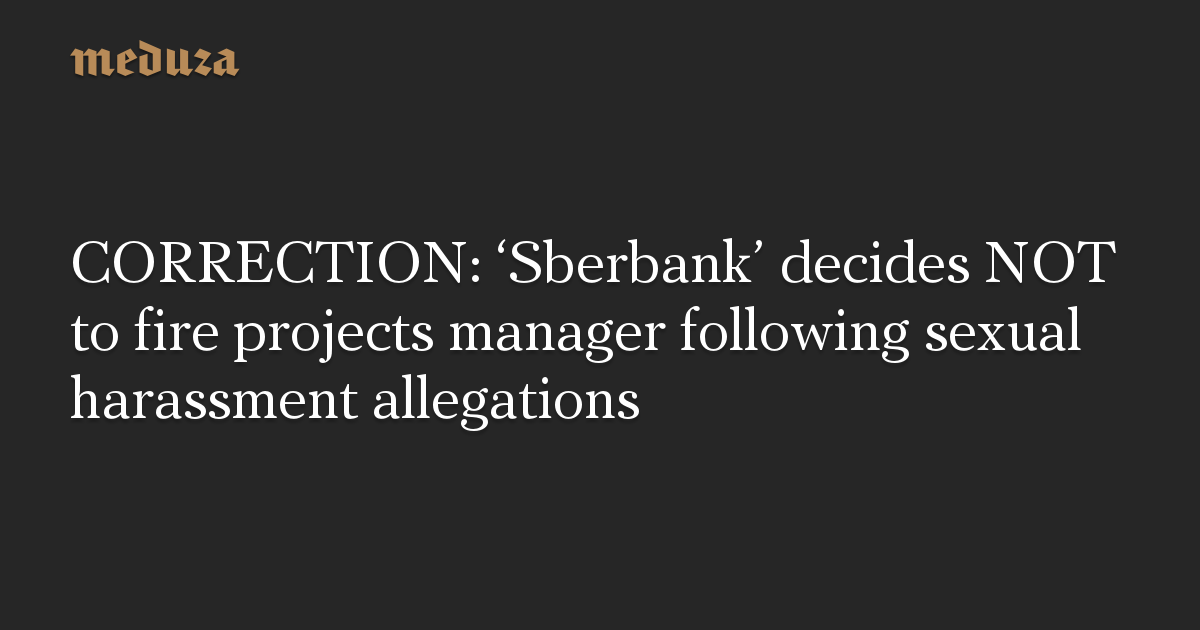 CORRECTION: ‘Sberbank’ decides NOT to fire projects manager following sexual harassment allegations