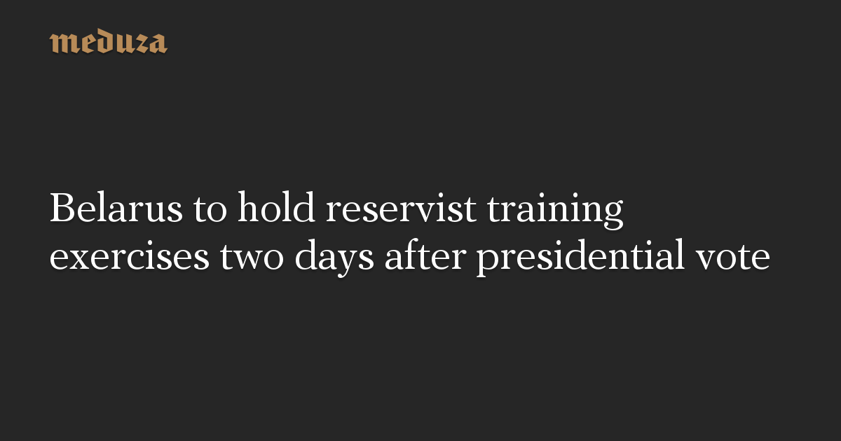 The Belarusian military has scheduled reservist training in the Vitebsk region on August 11, two days after the country holds its presidential election, according to the news agency Interfax. A spokeswoman for the Defense Ministry told reporters that the drills were planned previously as part of regular readiness exercises throughout the year, clarifying that reservists who are called up won’t always be drafted into military service.
