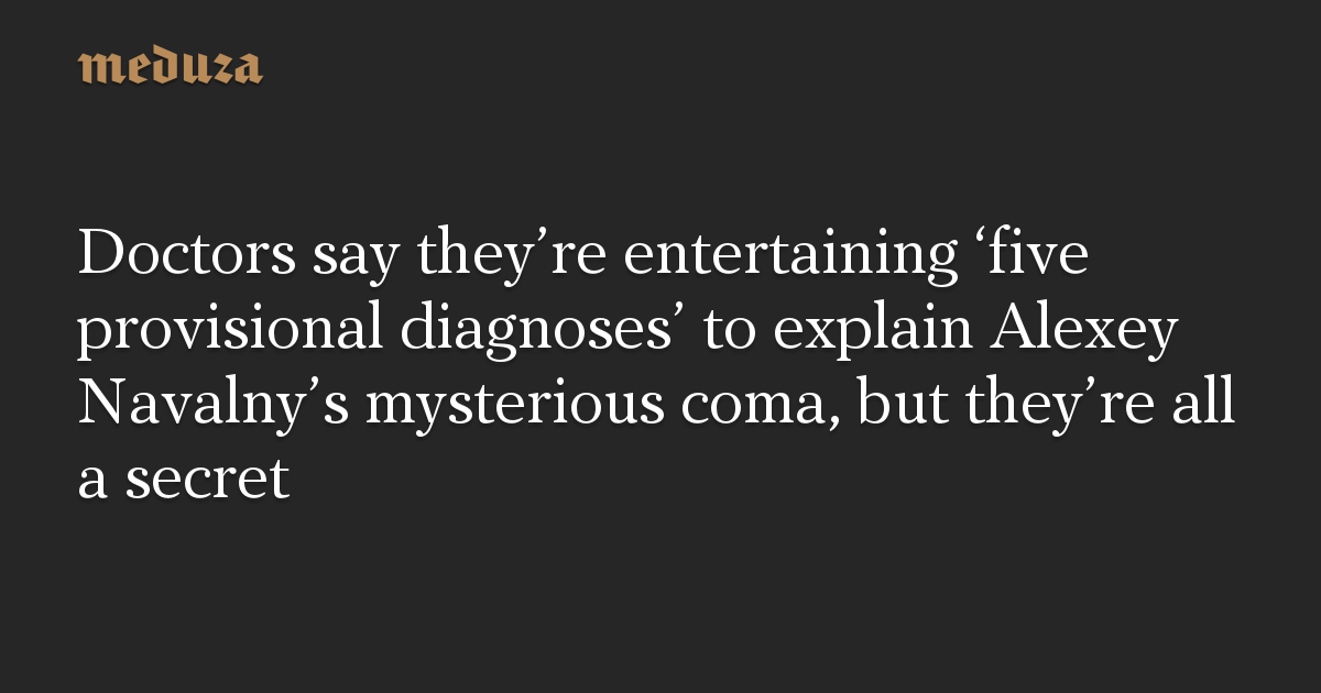 Doctors say they’re entertaining ‘five provisional diagnoses’ to explain Alexey Navalny’s mysterious coma, but they’re all a secret