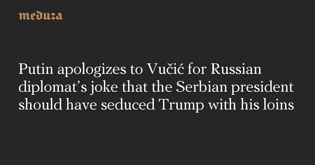 Putin apologizes to Vučić for Russian diplomat’s joke that the Serbian president should have seduced Trump with his loins