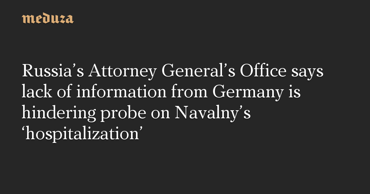 Russia’s Attorney General’s Office says lack of information from Germany is hindering probe on Navalny’s ‘hospitalization’