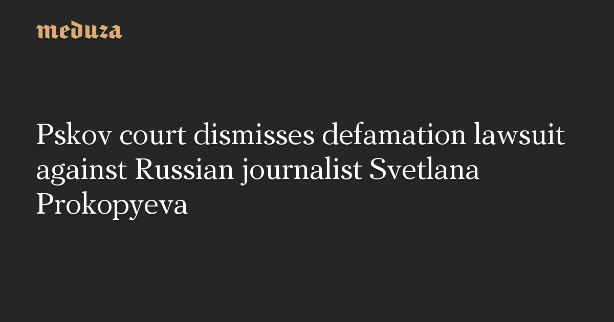 Pskov court dismisses defamation lawsuit against Russian journalist Svetlana Prokopyeva