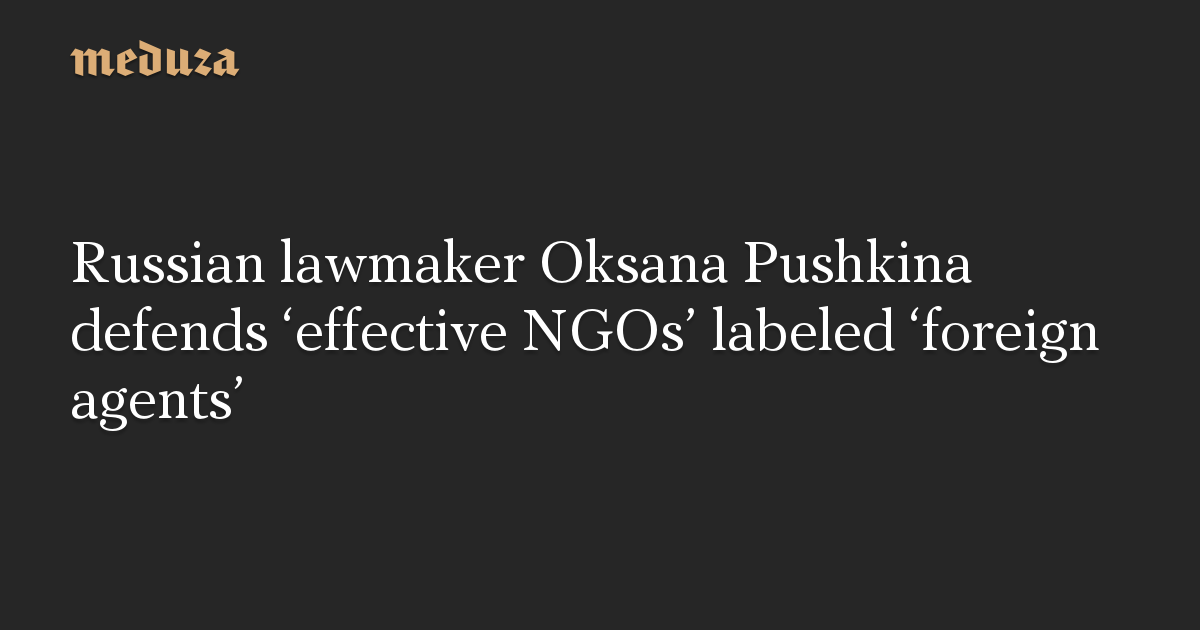 Russian lawmaker Oksana Pushkina defends ‘effective NGOs’ labeled ‘foreign agents’