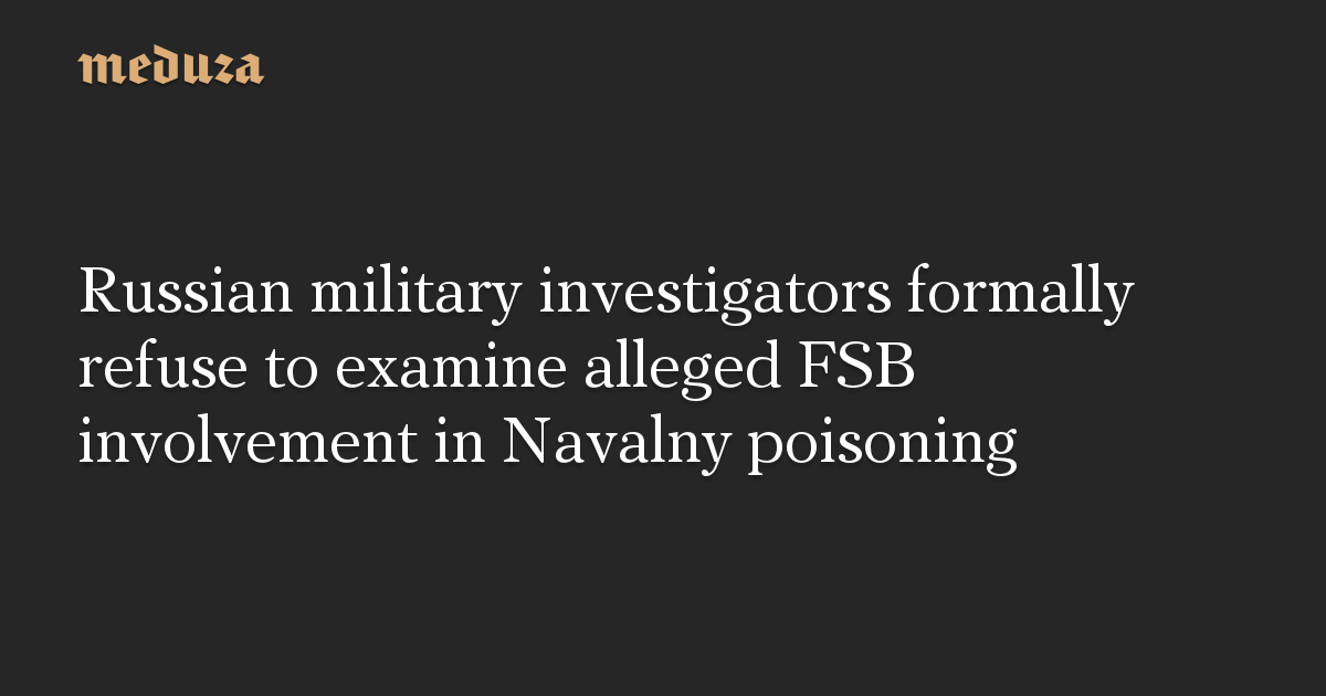 Russian military investigators formally refuse to examine alleged FSB involvement in Navalny poisoning