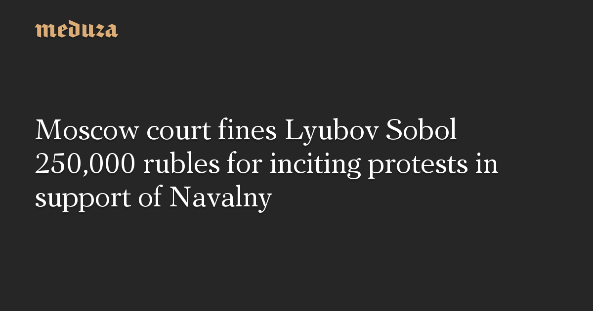 On Friday, January 22, a Moscow Court fined anti-corruption activist Lyubov Sobol 250,000 rubles (about $3,340) for inciting protests in support of jailed opposition figure Alexey Navalny.