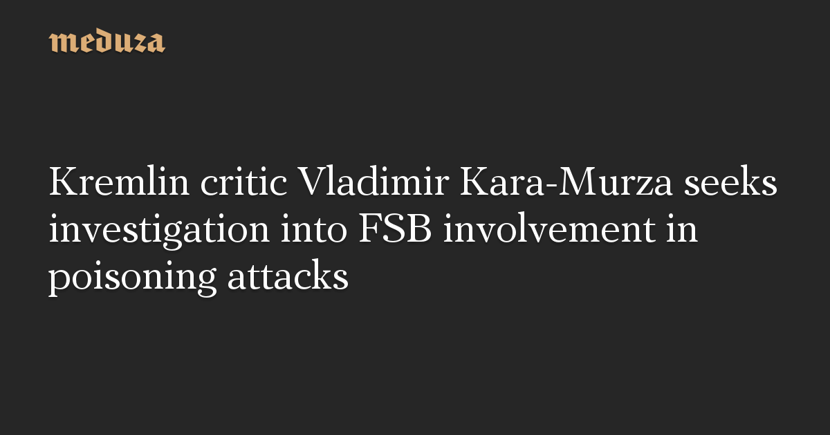 Kara-Murza is demanding the launch of a criminal investigation for attempted murder and is seeking the prosecution of FSB agents Roman Mezentsev, Alexander Samofal, Valery Sukharev, and Konstantin Kudryavtsev, all of whom were named in the journalistic report.