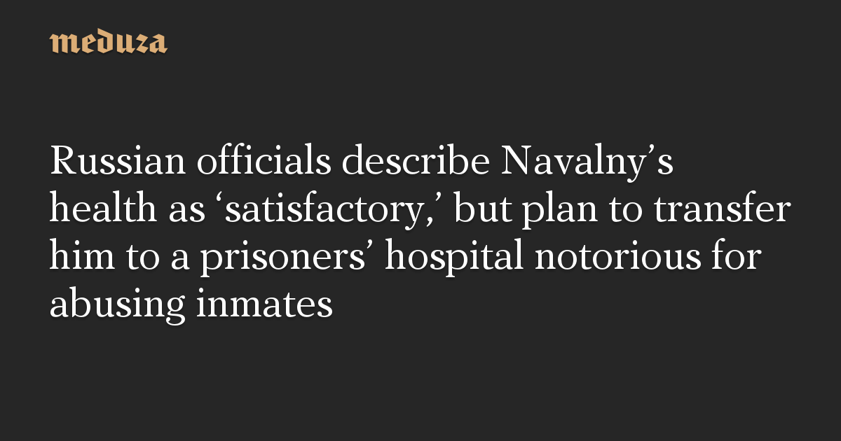 Russian officials describe Navalny’s health as ‘satisfactory,’ but plan to transfer him to a prisoners’ hospital notorious for abusing inmates