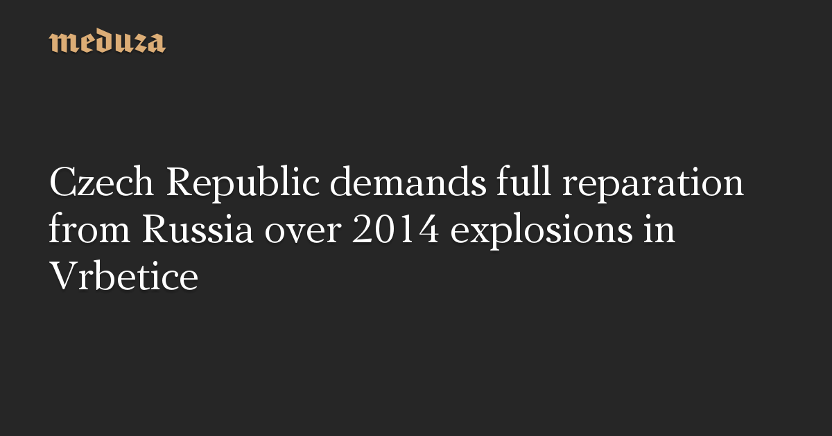 Czech Republic demands full reparation from Russia over 2014 explosions in Vrbetice