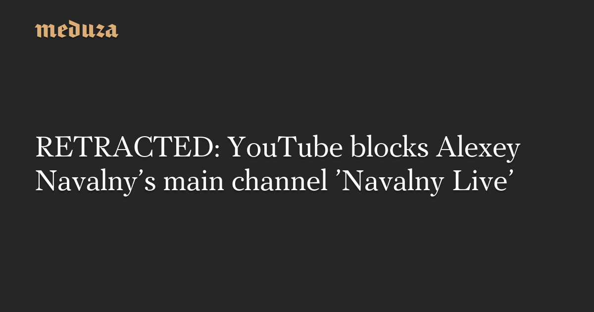 Story retracted: After Meduza published this story, the Navalny Live YouTube channel started broadcasting again. Navalny’s team says it has received no warnings from Google that its channel will be blocked, though it remains unclear why the YouTube broadcast was initially inaccessible. Meduza apologizes for the confusion.