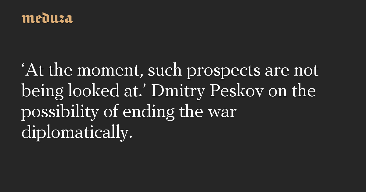 ‘At the moment, such prospects are not being looked at.’ Dmitry Peskov on the possibility of ending the war diplomatically.