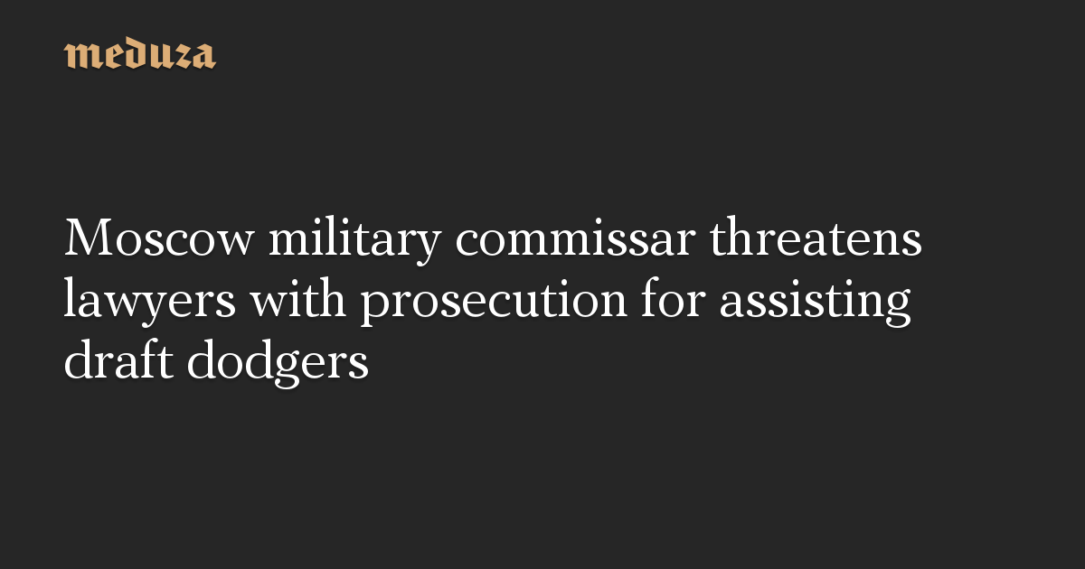 Moscow military commissar threatens lawyers with prosecution for assisting draft dodgers