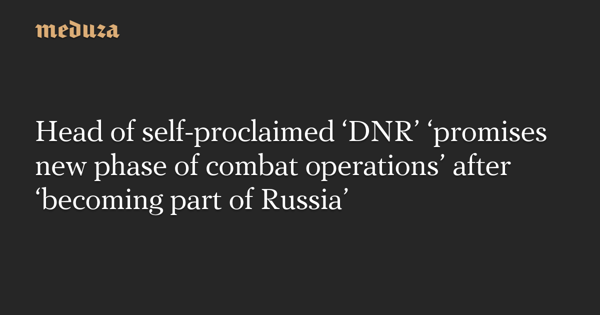 Denis Pushilin, who heads the self-proclaimed “Donetsk People’s Republic,” has said that after the “DNR” “becomes part of Russia” following a “referendum,” a “new phase of combat operations” will begin.