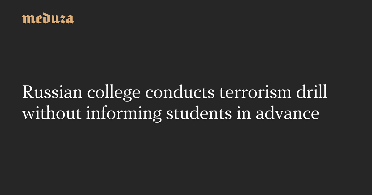 Administrators at the Rabotkinsky Agrarian College in Russia’s Nizhny Novgorod region held an anti-terrorism drill on Thursday without warning students, according to the local news site NN.ru. The site posted screenshots of messages sent by students who believed they were experiencing a real terrorist attack.