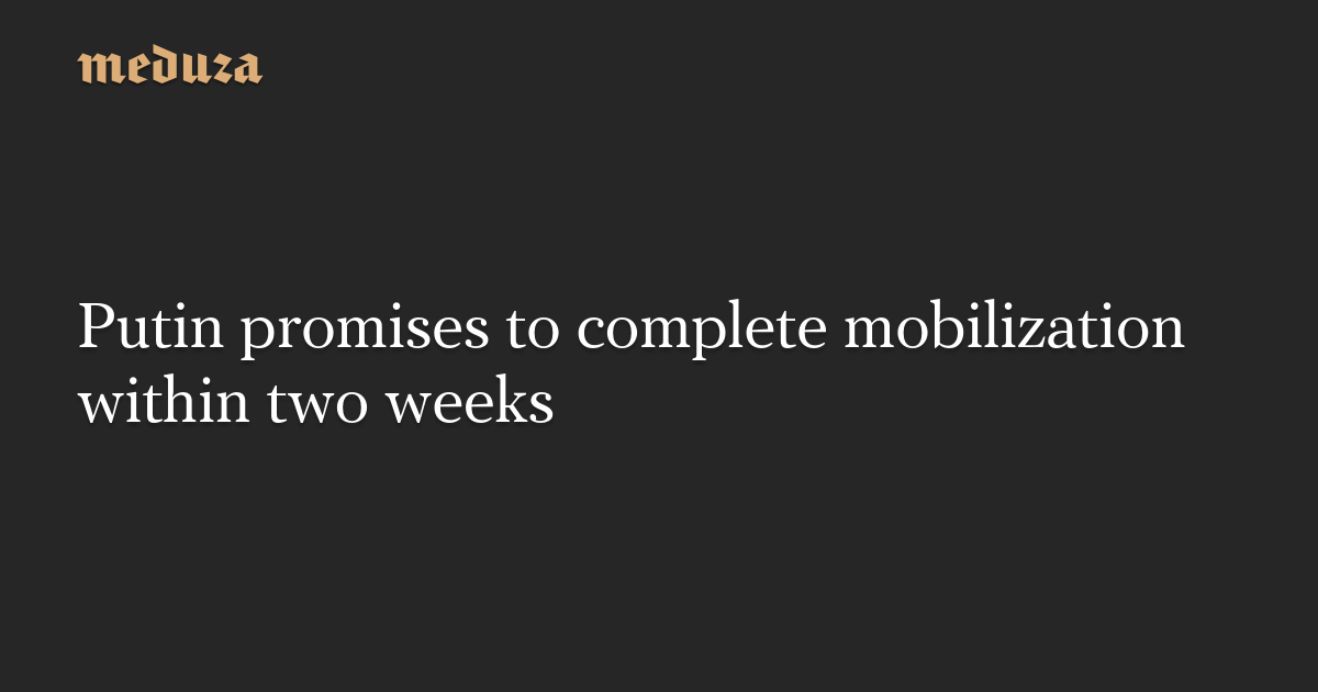 Russia’s President Vladimir Putin says that all “mobilization activities” will be completed within two weeks, as reported by RIA Novosti.