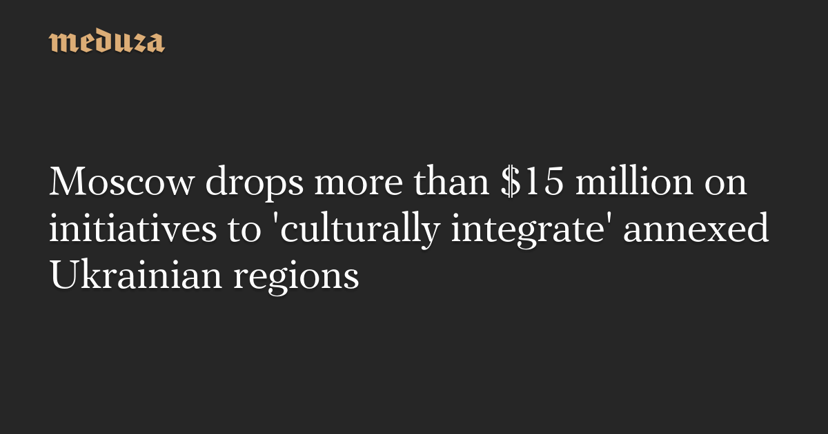 The Russian Presidential Fund for Cultural Initiatives spent 953 million rubles (approximately $15.5 million) on a competition dedicated to “culturally integrating” the regions of Ukraine that were annexed by Moscow in September, according to the news outlet Siren.