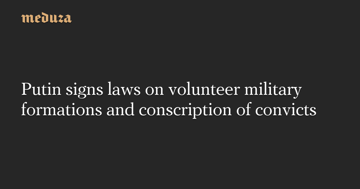 Vladimir Putin signed multiple new bills into law on Friday, including one concerning volunteer formations in the military and one concerning the conscription of people convicted of grave crimes.