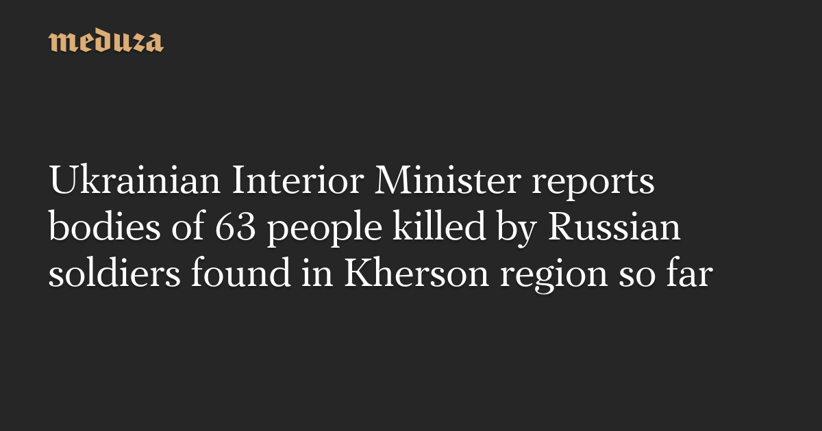 Ukrainian Interior Minister reports bodies of 63 people killed by Russian soldiers found in Kherson region so far