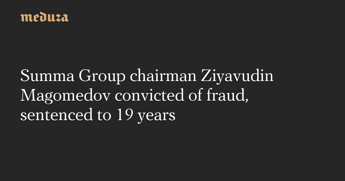 Moscow’s Meschansky District Court sentenced Summa Group founder and chairman Ziyavudin Magomedov to 19 years in a penal colony. The former billionaire and his brother, Magomed Magomedov, were found guilty of embezzling 11 billion rubles ($180 million) through land, real estate, and other transactions.