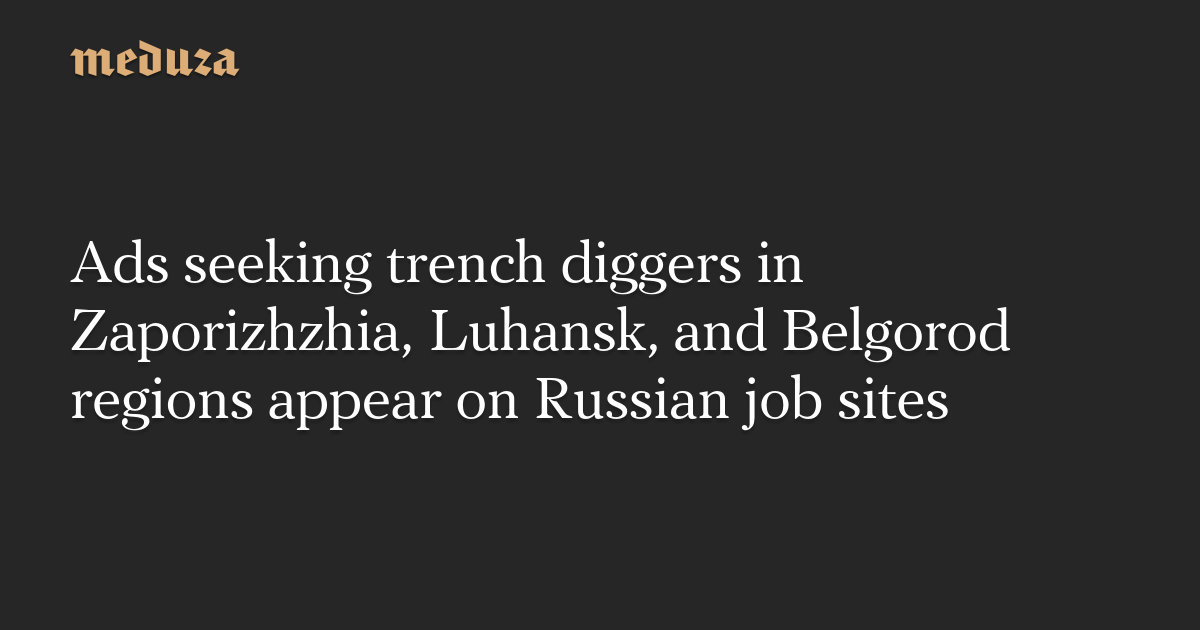 Ads seeking trench diggers in Zaporizhzhia, Luhansk, and Belgorod regions appear on Russian job sites
