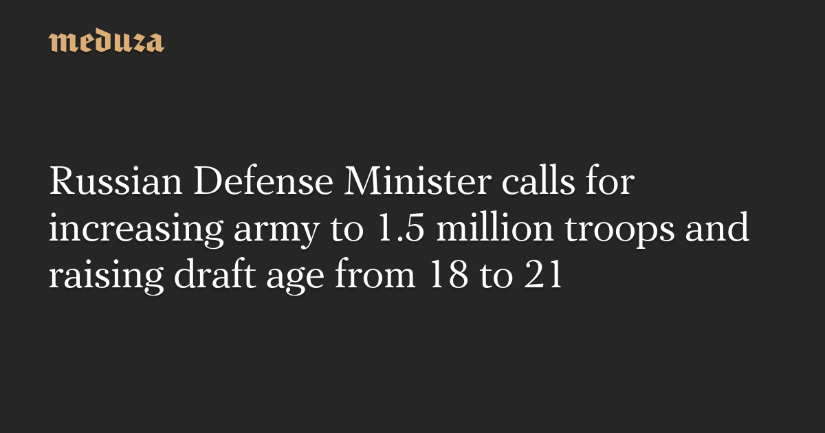 Russian Defense Minister calls for increasing army to 1.5 million troops and raising draft age from 18 to 21