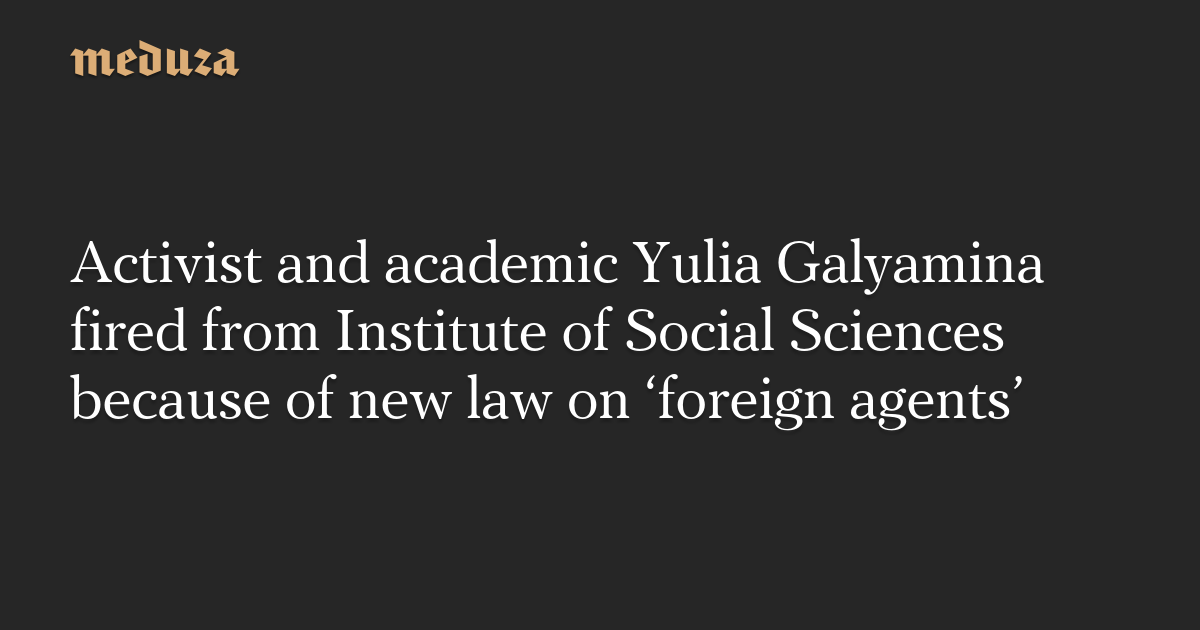 Activist, politician, and academic Yulia Galyamina was fired from her position as professor in the Department of the Theory and Practice of Media Communications at the Institute of Social Sciences of the Russian Presidential Academy of National Economy and Public Administration (RANEPA), after new provisions to the law on “foreign agents” took effect. Galyamina posted her dismissal notice on Facebook.