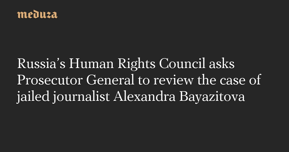 Russia’s Human Rights Council asks Prosecutor General to review the case of jailed journalist Alexandra Bayazitova