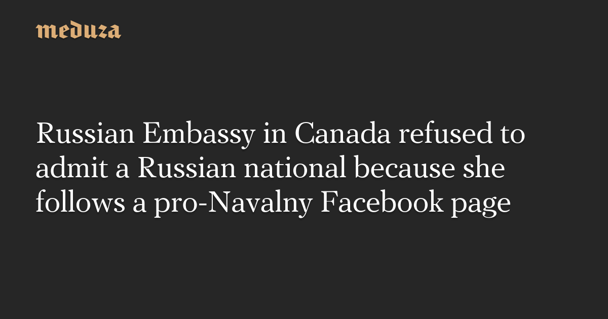The Russian Embassy in Ottawa refused to receive Russian national Elena Pushkareva, who lives in Canada, because she subscribes to a Facebook group called “For the beautiful Russia of the future.” The Facebook group takes its name from the phrase “beautiful Russia of the future,” which jailed opposition leader Alexey Navalny and his team often use. Pushkareva reported the incident with the Russian Embassy to the Navalny team’s publication, Sirena.