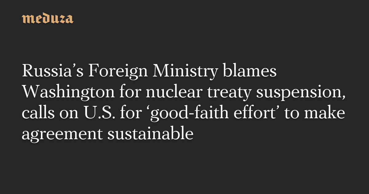 Russia’s Foreign Ministry blames Washington for nuclear treaty suspension, calls on U.S. for ‘good-faith effort’ to make agreement sustainable