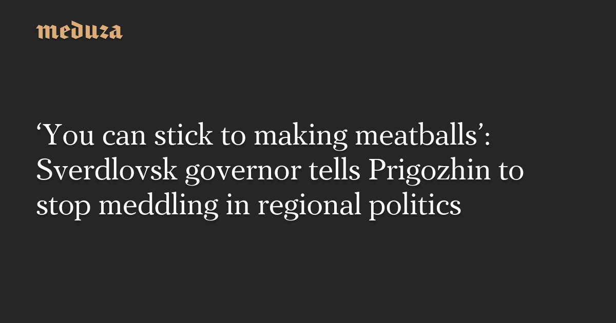 After Wagner Group founder Evgeny Prigozhin attacked several of Russia’s regions for what he described as “openly shitting” on Russia’s “special military operation” in Ukraine, Sverdlovsk Governor Evgeny Kuyvashev publicly told Prigozhin to “stick to making meatballs” and stop meddling in regional politics.