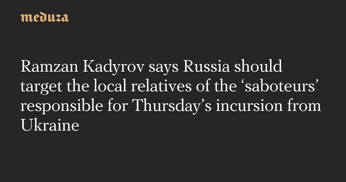 Ramzan Kadyrov says Russia should target the local relatives of the ‘saboteurs’ responsible for Thursday’s incursion from Ukraine